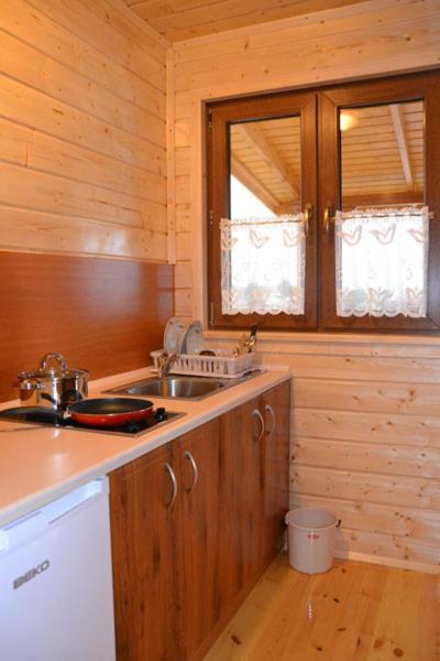 Dom z 2 sypialniami. This holiday home consists of 1 living room, 2 separate bedrooms and 1 bathroom with a walk-in shower. Guests will find a stovetop, a refrigerator, kitchenware and an electric kettle in the well-equipped kitchen. The holiday home also offers a barbecue. Featuring a terrace with garden views, this holiday home also provides a seating area and a flat-screen TV. The unit offers 6 beds. Dom wakacyjny - 7 osobowy. Powierzchnia pokoju ok.: 50 mkw.