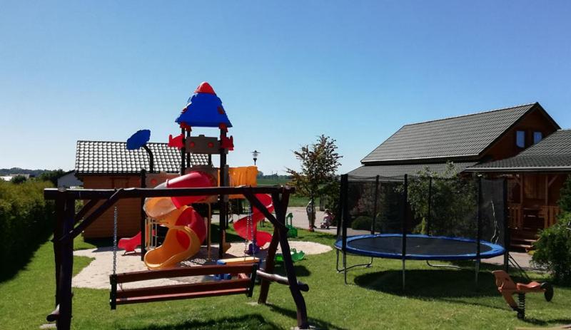 Dom z 2 sypialniami. This holiday home features 1 living room, 2 separate bedrooms and 1 bathroom with a walk-in shower. Guests will find a stovetop, a refrigerator, kitchenware and an electric kettle in the fully equipped kitchen. The holiday home also comes with a barbecue. Boasting a terrace with garden views, this holiday home also features a seating area and a flat-screen TV. The unit has 5 beds. Dom wakacyjny - 6 osobowy. Powierzchnia pokoju ok.: 50 mkw. ;