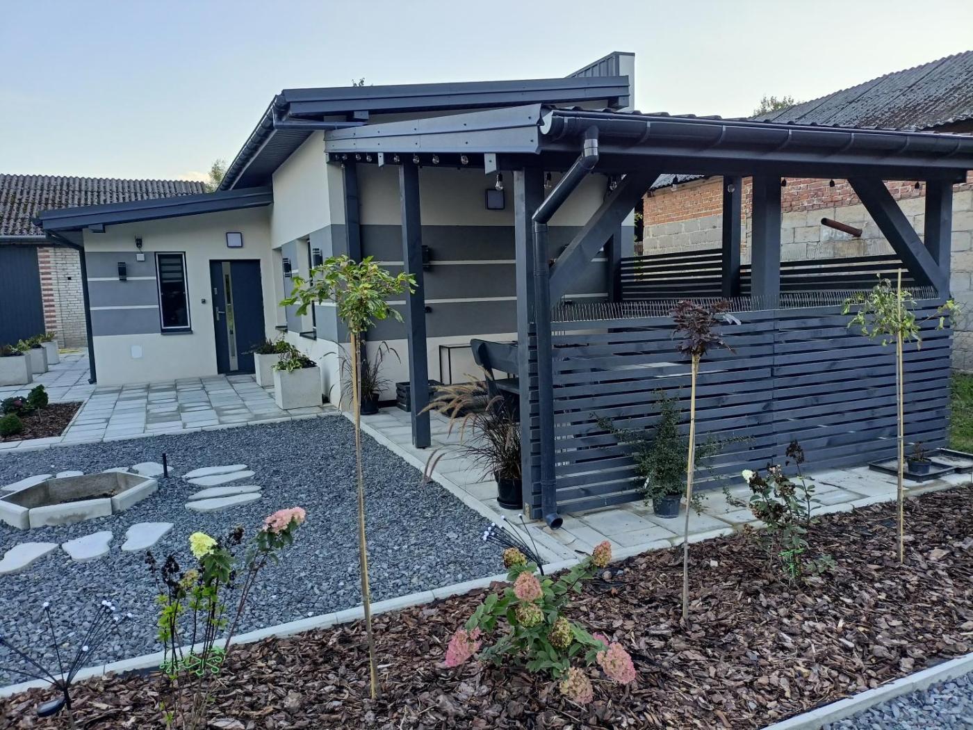 Dom z 2 sypialniami. Boasting a private entrance, this air-conditioned holiday home features 1 living room, 2 separate bedrooms and 1 bathroom with a shower and a hairdryer. The well-equipped kitchenette has a stovetop, a refrigerator, a dishwasher and kitchenware. Featuring a terrace with garden views, this holiday home also features a wardrobe and a flat-screen TV. The unit has 3 beds. Dom wakacyjny - 6 osobowy. Powierzchnia pokoju ok.: 48 mkw.