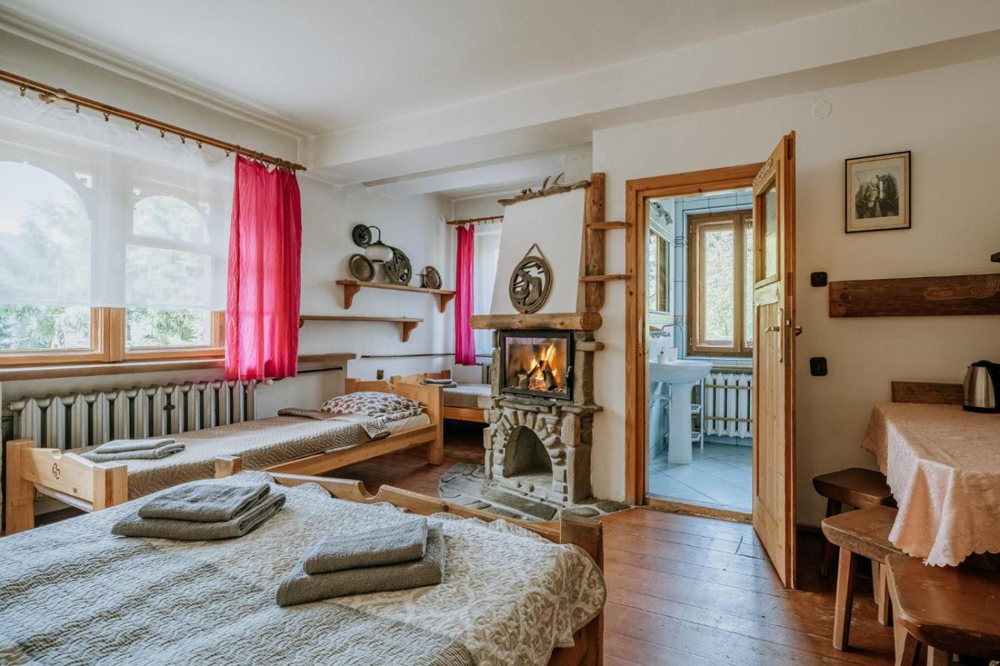 Pokój czteroosobowy z widokiem na góry. Guests will have a special experience as the quadruple room offers a fireplace. The quadruple room provides a dining area, a wardrobe, a balcony with mountain views as well as a private bathroom featuring a shower. The unit offers 4 beds. Pokój Czteroosobowy - 4 osobowy. Powierzchnia pokoju ok.: 25 mkw.