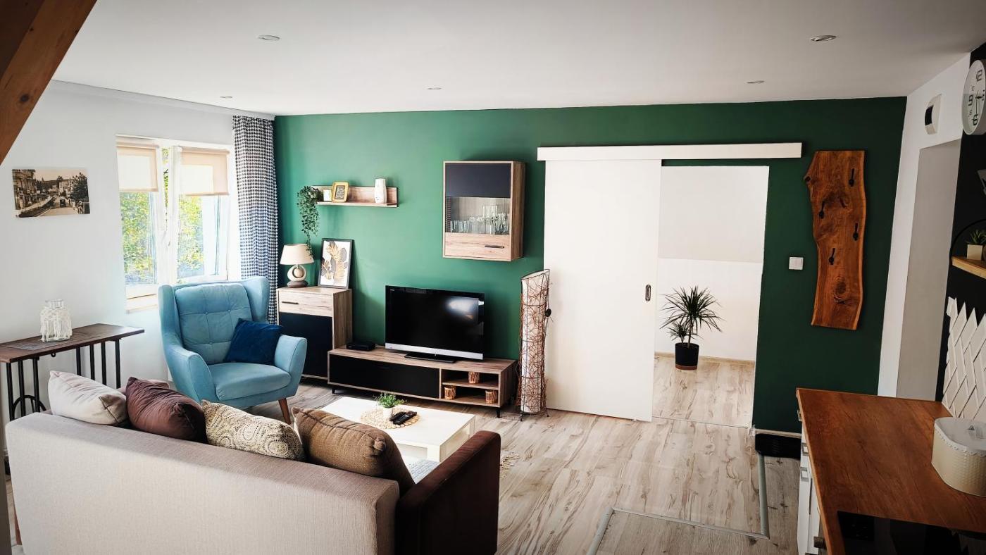 Apartament z 1 sypialnią. Boasting a private entrance, this apartment includes 1 living room, 1 separate bedroom and 1 bathroom with a shower and a hairdryer. Guests will find a stovetop, a refrigerator, a dishwasher and kitchenware in the kitchen. The apartment also features a barbecue. The apartment offers a flat-screen TV with satellite channels, a washing machine, a tea and coffee maker, a seating area as well as garden views. The unit has 4 beds. Apartament - 5 osobowy. Powierzchnia pokoju ok.: 40 mkw.