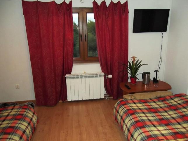 Pokój Dwuosobowy z 1 lub 2 łóżkami i wspólną łazienką. Jest to jasny, prosto urządzony pokój wyposażony w telewizor LED z płaskim ekranem. Pokój Dwuosobowy z 1 lub 2 łóżkami - 2 osobowy. Powierzchnia pokoju ok.: 13 mkw. ;