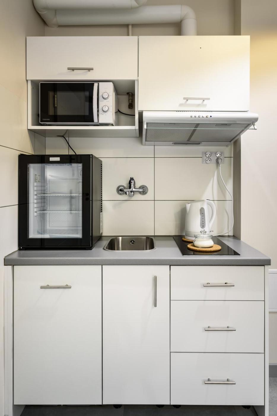 W apartamencie zapewniono sypialnię (1), aneks kuchenny z pełnym wyposażeniem oraz łazienkę (1).