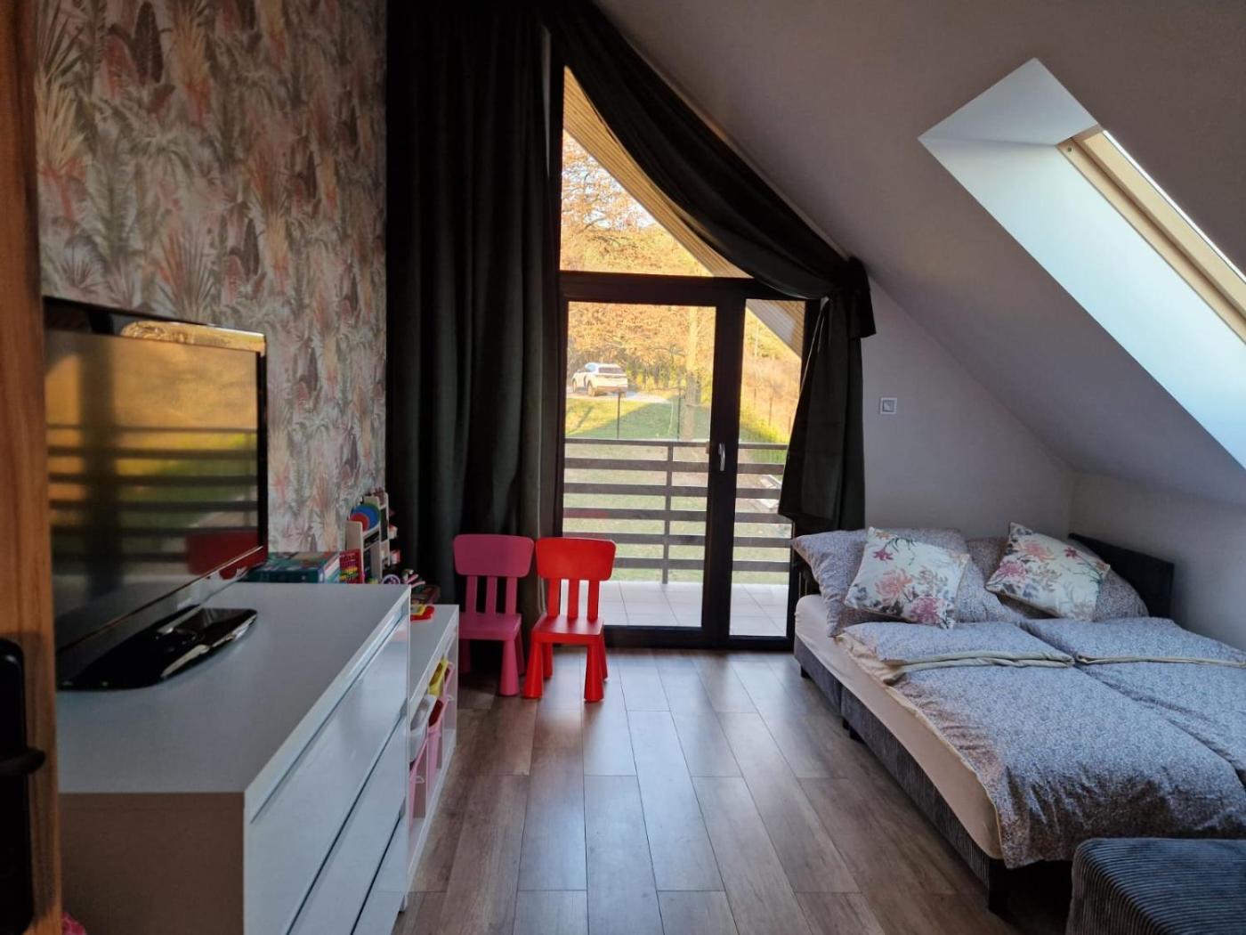 Willa. Featuring a private entrance, this villa comprises 1 living room, 4 separate bedrooms and 2 bathrooms with a bath and a shower. Guests will find a stovetop, a refrigerator, a dishwasher and kitchenware in the kitchen. The villa also provides guests with a barbecue. Boasting a terrace with garden views, this villa also provides a washing machine and a flat-screen TV. The unit offers 5 beds. Willa - 10 osobowy. Powierzchnia pokoju ok.: 108 mkw.