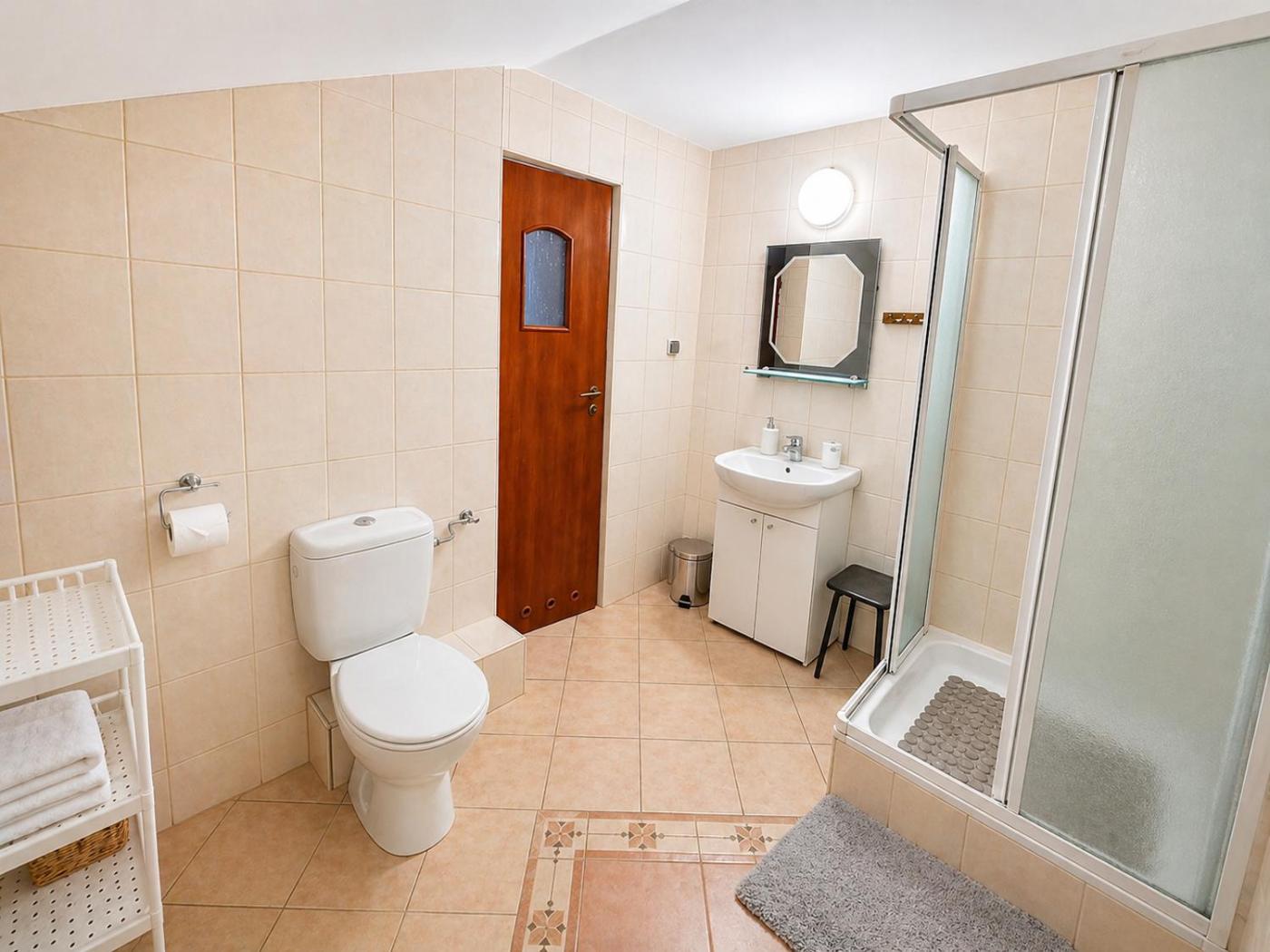 Pokój czteroosobowy z prywatną łazienką poza pokojem. The quadruple room features a wardrobe, an electric kettle, as well as a private bathroom boasting a walk-in shower and a hairdryer. This quadruple room provides a tiled floor and a flat-screen TV. The unit has 2 beds. Pokój Czteroosobowy - 4 osobowy. Powierzchnia pokoju ok.: 16 mkw. ;